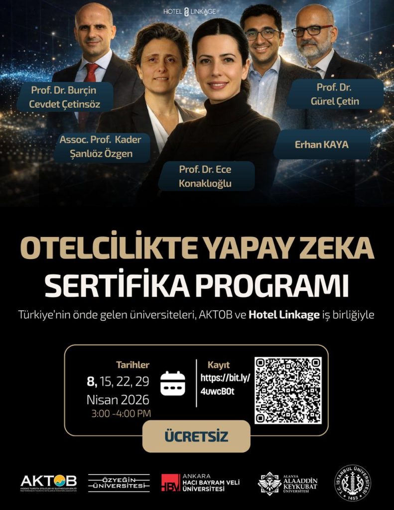 AKTOB, Hotel Linkage ve Üniversitelerden Otelcilikte Yapay Zekâ Hamlesi Türkiye turizm sektörünün dijital dönüşüm sürecine katkı sağlamak amacıyla, Akdeniz Turistik Otelciler ve İşletmeciler Birliği (AKTOB), Türkiye’nin önde gelen üniversiteleri ve Hotel Linkage iş birliğiyle “Otelcilikte Yapay Zekâ Sertifika Programı” hayata geçiriliyor. Nisan 2026’da başlayacak program, sektörde yapay zekâ uygulamalarına yönelik farkındalığı artırmayı ve turizm profesyonellerinin […]