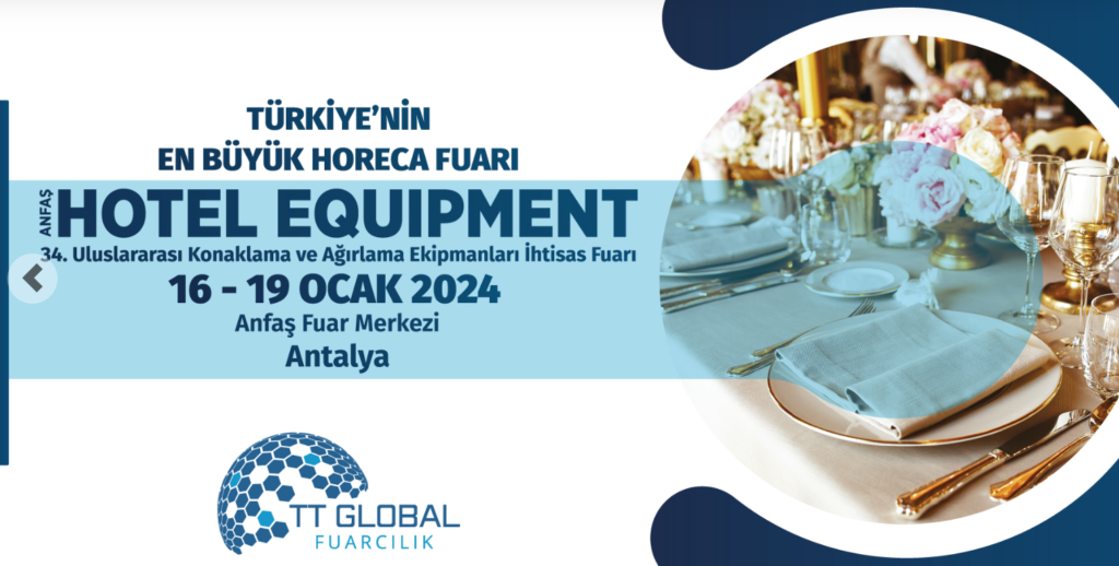 Hotel Equipment Hedefinize Ulaşmanızı Sağlar.. Yaratıcı etkinlikler ve başarılı fuar organizasyonlarıyla tanınan TT GLOBAL – Anfaş Hotel Equipment, Uluslararası Konaklama ve Ağırlama Ekipmanları İhtisas Fuarı’nın kapılarını 34’üncü kez açmaya hazırlanıyor. 16 – 19 Ocak 2024 tarihleri arasında Anfaş Uluslararası Fuar ve Kongre Merkezi’nde gerçekleştirilecek 34. Hotel Equipment; 200’ün üzerinde katılımcıyı, yurt içinde 70 il ve […]