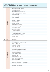 ÖĞLE VE AKŞAM BÜFESİ / SICAK YEMEKLER ÖĞLE VE AKŞAM BÜFESİ / SICAK YEMEKLER